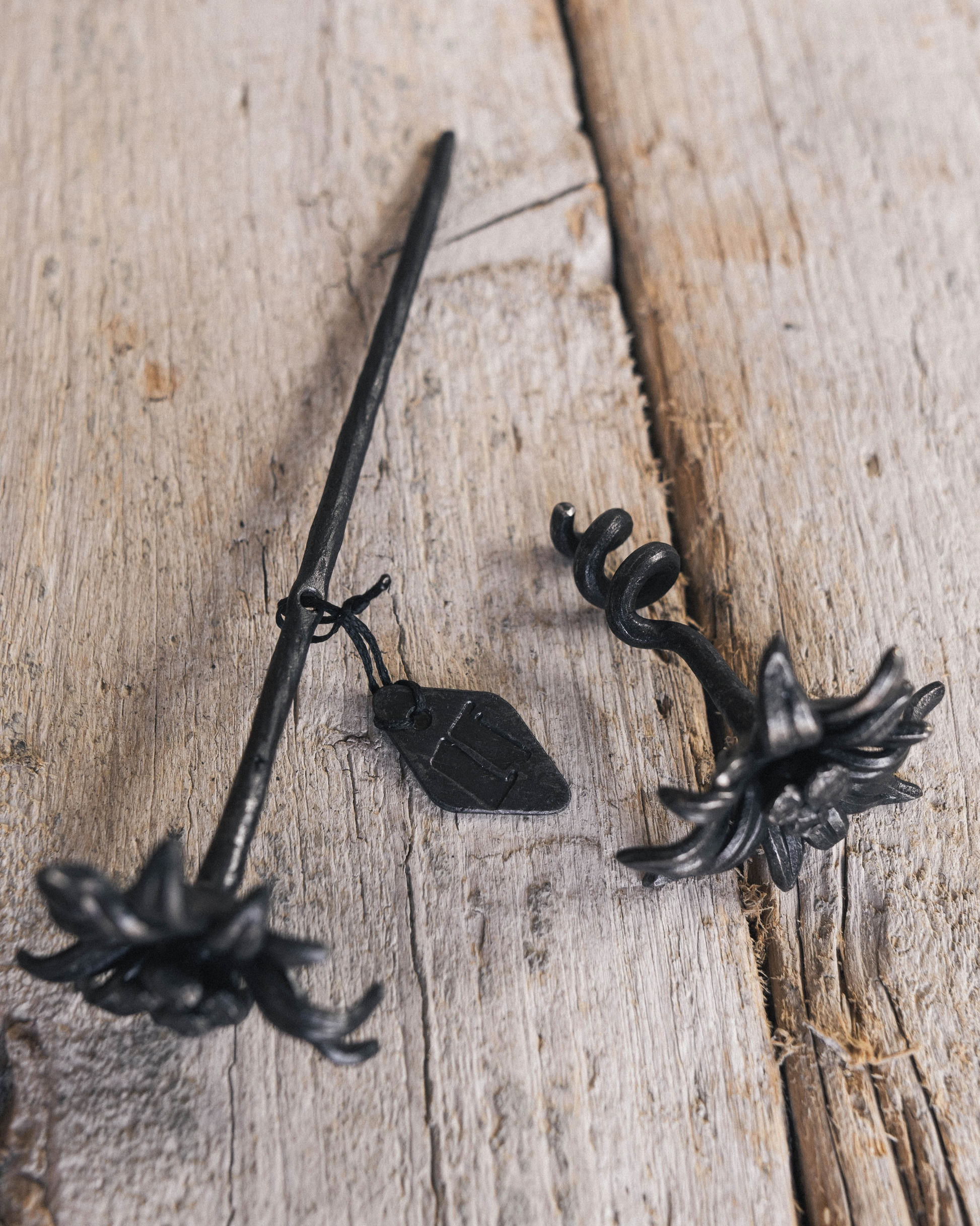 Pflegehinweis: Bitte beachte, dass Schmiedeeisen durch Feuchtigkeit rosten kann. Zur Pflege regelmäßig mit einem Ölfilm versehen (z.B. Ballistol Universalöl). Sicherheitshinweis: Kopfschmuck beim Autofahren oder z.B. in Fahrgeschäften abnehmen, um Verletzungen und Verlust zu vermeiden.